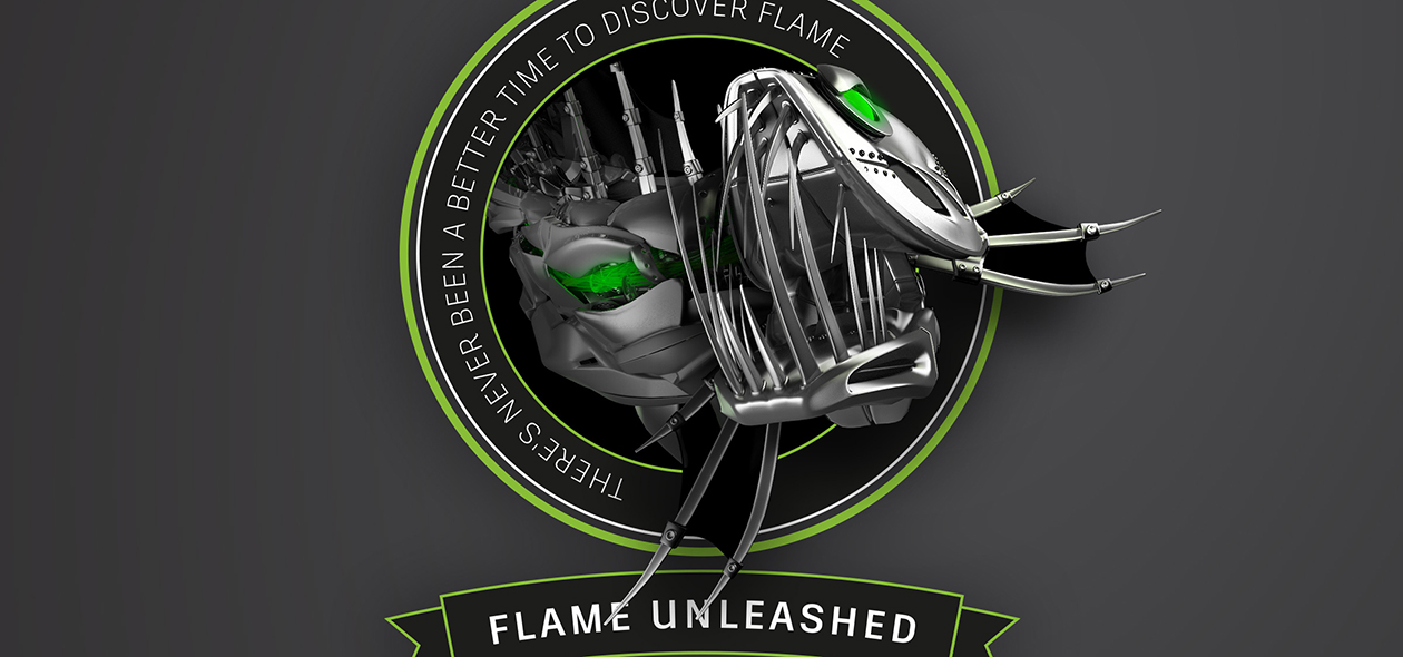 Using campaign creative from the recent Flame Unleashed and Create Amazing campaigns, we created a whole range of larger-than-life print assets to assert the Flame brand at the event. The result was a selection of stand graphics, shop window prints, and meeting room decoration with serious attitude which would attract the Flame target audience.