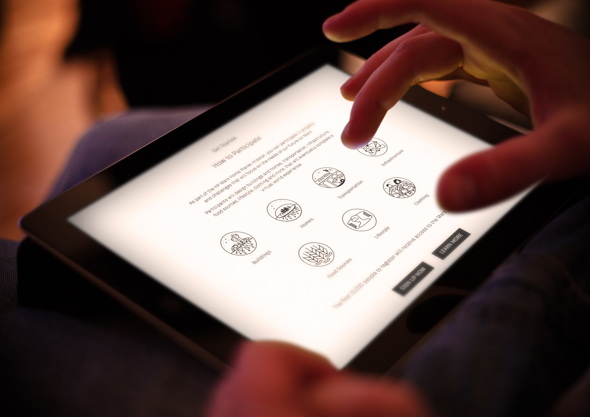 Drawing on powerful imagery that hinted at the possibilities for what life on Mars could look like, the landing page invites users into the world of the Mars Urbanization Project, encouraging them to make their mark. With enough imagination and ingenuity (and the right Autodesk software) they’ll see their idea brought to life in Virtual Reality.