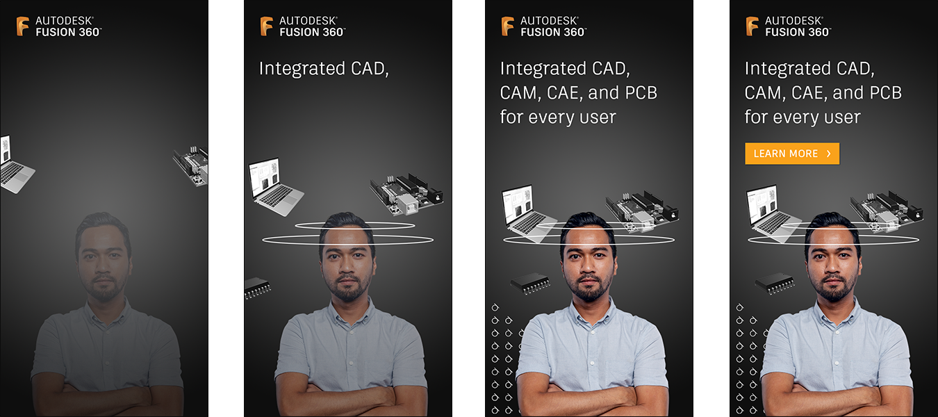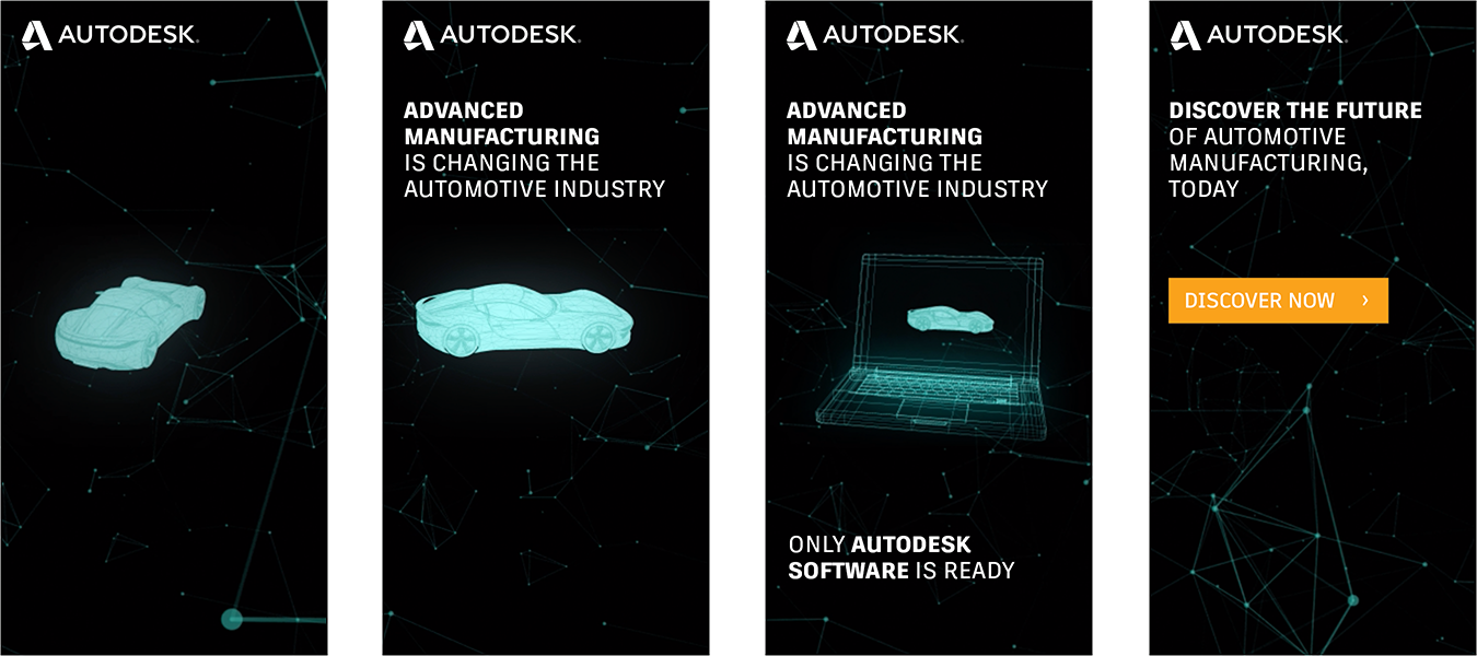 With HTML5 banners you have the ability to incorporate motion to better attract attention from your target audience. Motion can be applied to any element within the banner and can be used to reinforce the message being delivered. HTML5 banners can also use more than one frame of creative. This allows you to tell a story, highlight various product features, benefits and updates, showcase more compelling imagery, and give the viewer more valuable information, all of which contributes towards higher click-through-rates.