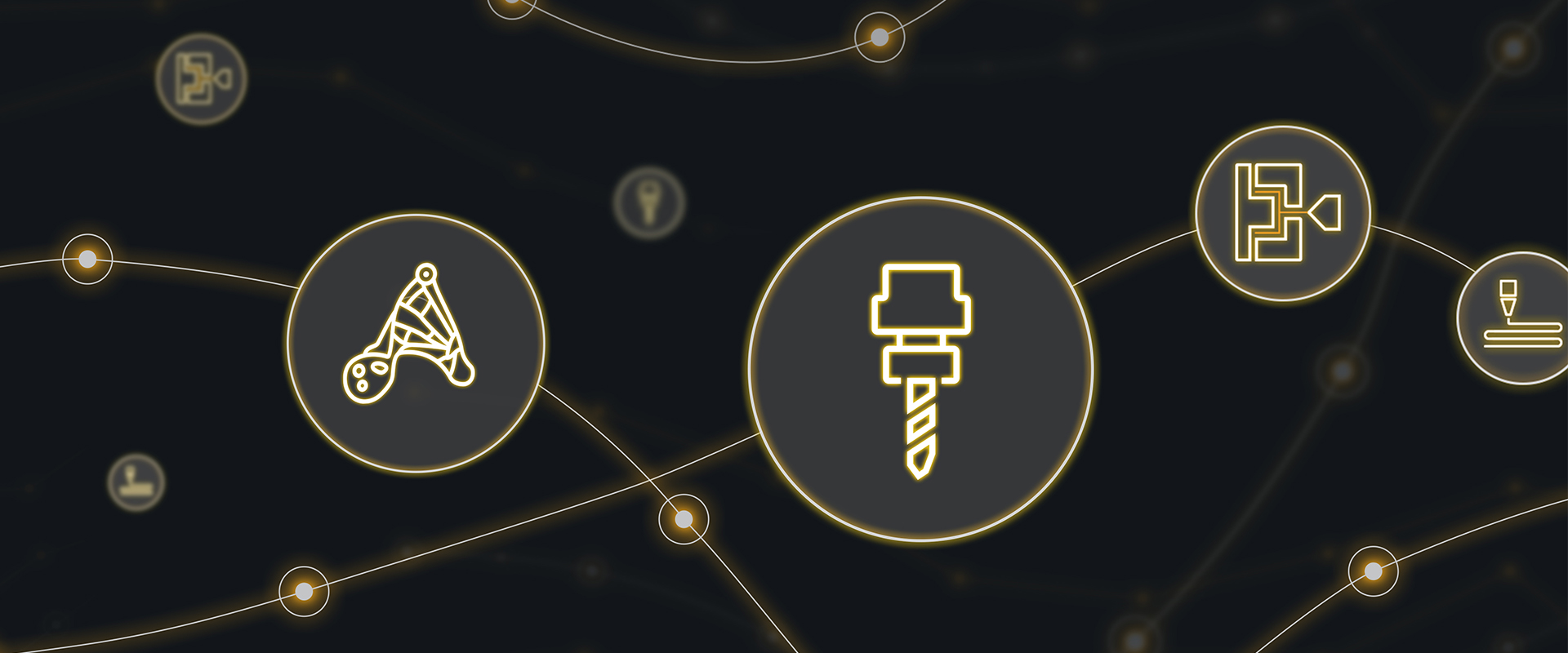 The icons represent the different manufacturing processes, such as mold simulation, additive manufacturing, generative design, and CNC machining.